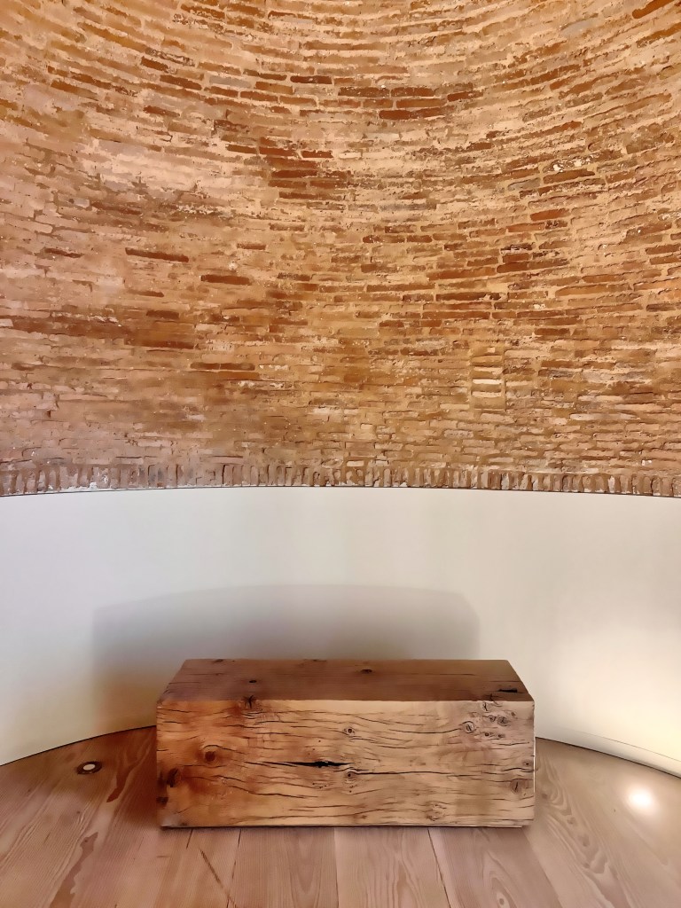 Hus Moet & Chandon er nydelig. Før vi går ned i vinkjelleren, føres vi gjennom en vakker, kuratert utstilling laget av franske tekstildesigner.