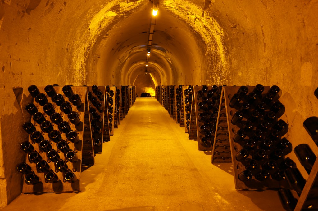 Moët & Chandon har en av de største vinkjellerne i Champagne-regionen, med et samlet areal på over 28 hektar (ca. 280 000 kvadratmeter), og et nettverk av omtrent 100 kilometer med kalksteinskjellere og tunneler. Disse kjellerne ligger mellom 10 og 30 meter under bakken, hvor temperaturen holder seg stabilt mellom 10 og 12 grader Celsius, noe som er perfekt for lagring av Champagne.