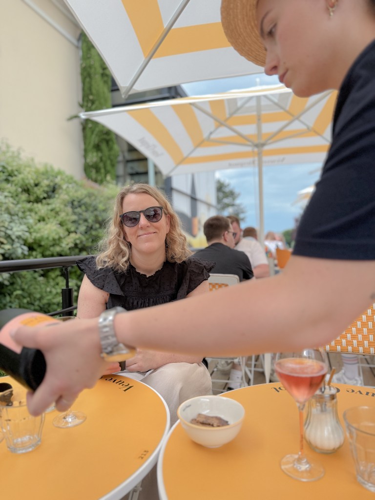 Champagne kom opp igjen av hatten. Jeg ønsker ikke å trå noen av de andre drikkene på tærne, men det er altså sånn at det er Champagne vi liker best. Egentlig hadde vi tenkt å spare Champagne til tur nummer 10 – litt sånn jubileumstur. Det er jo litt fest over Champagne. Men drit i, tenkte vi. Vi er to damer i vår beste alder, hvorfor vente på noe som kan nytes nå.